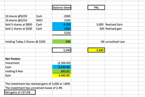 As a starter, I wanted to set out our investment position and illustrate with real numbers just how good an investment SMCI was. Today we are up 137.6%. In fact if you valued our holding at zero the gain would be 110%. To be clear, if the stock got wiped out, we would still be up 110% in cash. By any measure it was a great investment, in less than 11 months.